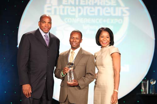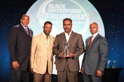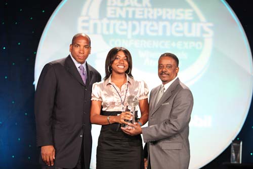One of the most highly anticipated events at the 15th Annual Black Enterprise Entrepreneurs Conference + Expo, hosted by ExxonMobil at the Atlanta Marriott Marquis, was the 2010 Black Enterprise Small Business Awards Luncheon hosted by Ariel Investments. The Small Business Awards recognizes outstanding entrepreneurs in four award categories: Teenpreneur (ages 19 or younger), BE Next (ages 21-35), Innovator of the Year and Small Business of the Year. Above, Black Enterprise Magazine Editor-in-Chief Derek T. Dingle poses with 2010 award winners Amos Winbush III of CyberSynchs L.L.C., Jamail Larkins of Ascension Aircraft, Gabrielle McBay of Crumbs by Gabrielle, and Frank Kendrick and Timothy Jackson of NuJak Cos.(All Photos by Lonnie C. Major)