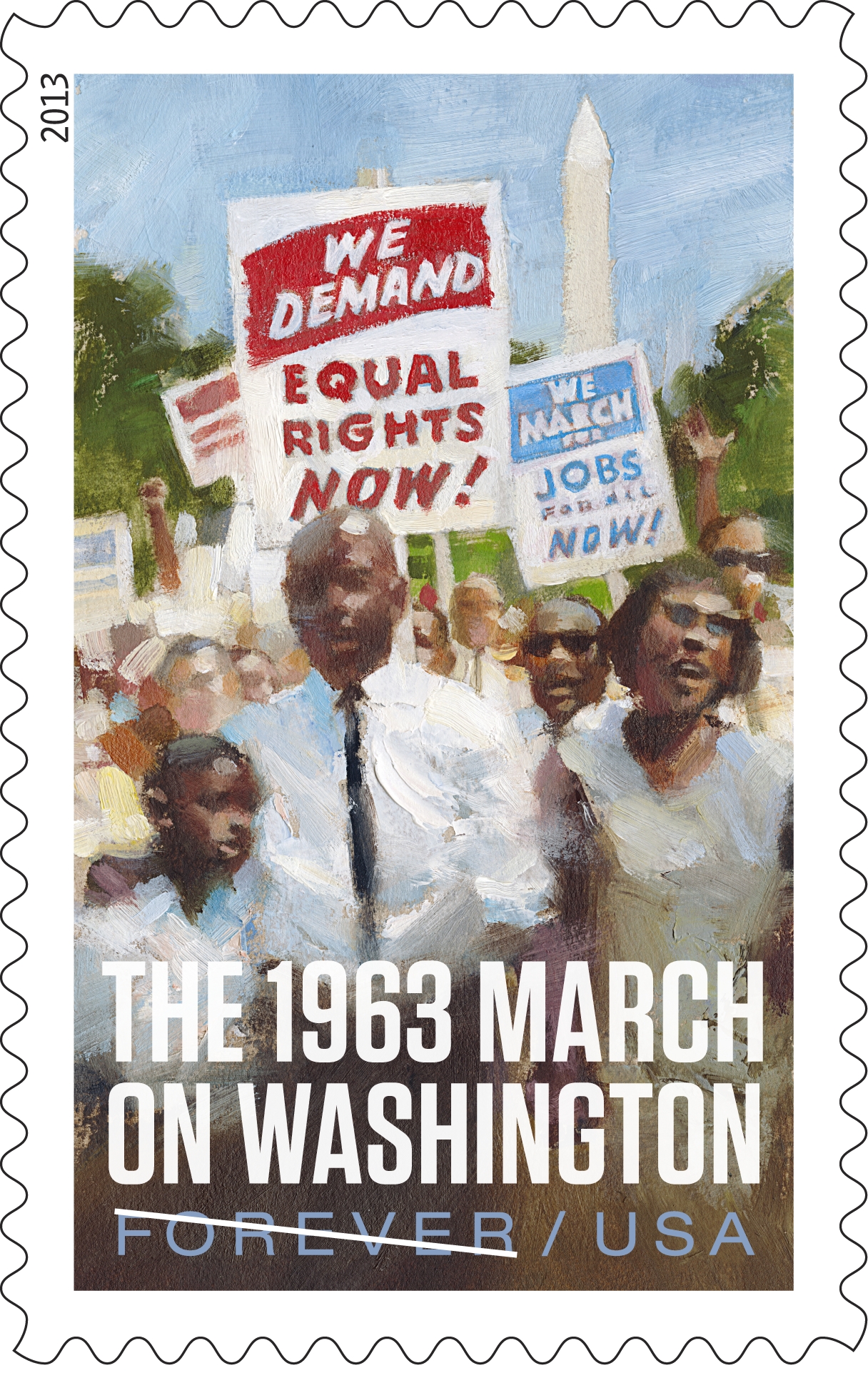 The 1963 March on Washington stamp is the last of three stamps issued this year as part of a civil rights series commemorating courage, strength and equality in America. The first Forever stamp marked the 150th anniversary of the Emancipation Proclamation in January, while the second Forever stamp honored Rosa Parks on the 100th anniversary of her birth in February.