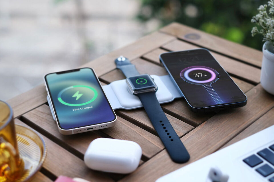 This 3-in-1 charger features a foldable design with three wireless charging spots that enable charging for up to three devices simultaneously. It’s compatible with the iPhone, Apple Watch, AirPods Pro, AirPods with Wireless Charging Case, other Qi-Compatible Android Phones, and Bluetooth earbuds.