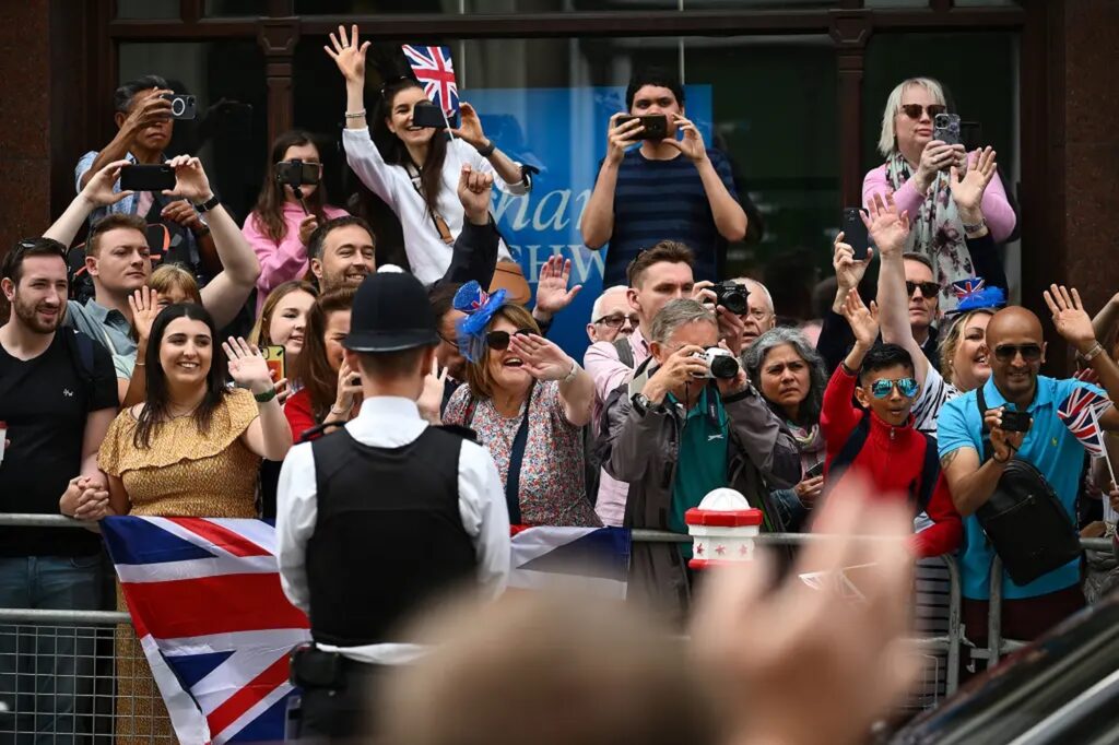 Supporters of the royal family remain at odds with the couple who chose to exit from the family in 2020, the hecklers drowning out the excitement outside the church.