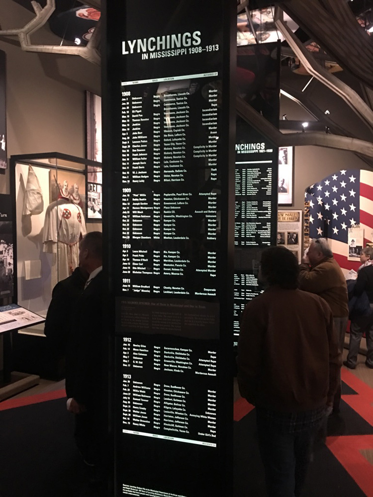 There were several displays that really made me emotional. The first was a list of names of those lynched in Mississippi from the early 1900s to about 1970. There were so many panels of names, and these were very tall panels, I wondered whether some names had been repeated. They were not repeated.