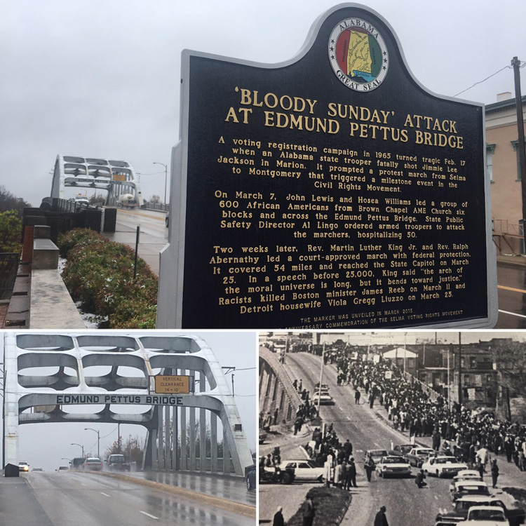 The National Voting Rights Museum is at the base of the infamous Edmund Pettus bridge, where Selma to Montgomery marchers were met with tear gas, water cannons, police dogs, and batons to keep them from continuing their equality march. This sad episode of American history played out on a national stage, as broadcast networks aired the carnage of what was to be named “Bloody Sunday” on televisions across the country.