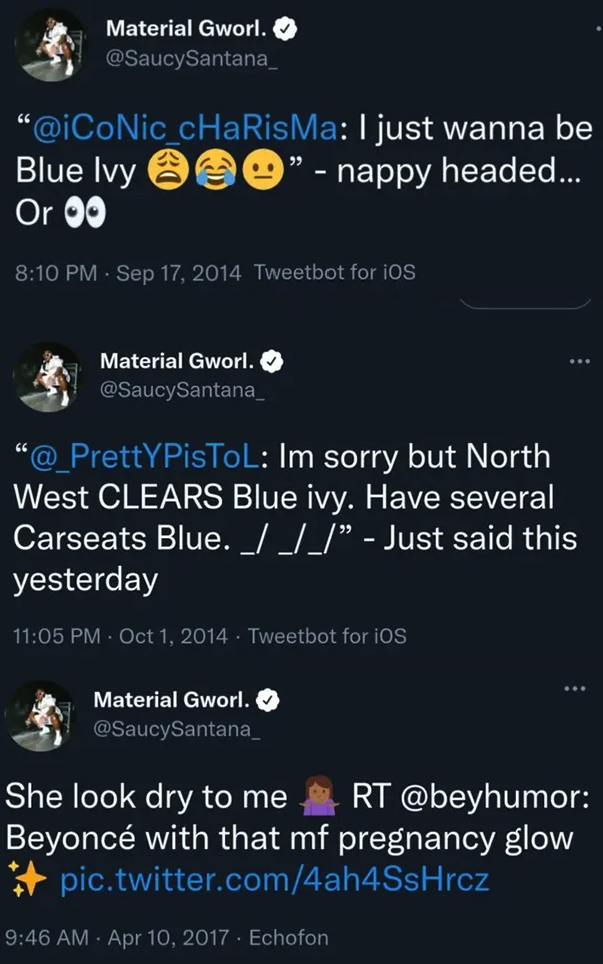 Saucy Santana became the main character on social media on Friday, when he was trending for resurfaced tweets that said some distasteful things about Beyoncé and her daughter Blue Ivy.