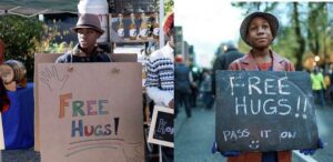 A jarring scene which many recognized by the viral image the child this was based on because of the fedora he donned, he notices a cop and rips off the “Free Hugs” sign he was forced to wear at a farmer’s market, pleading to go home.