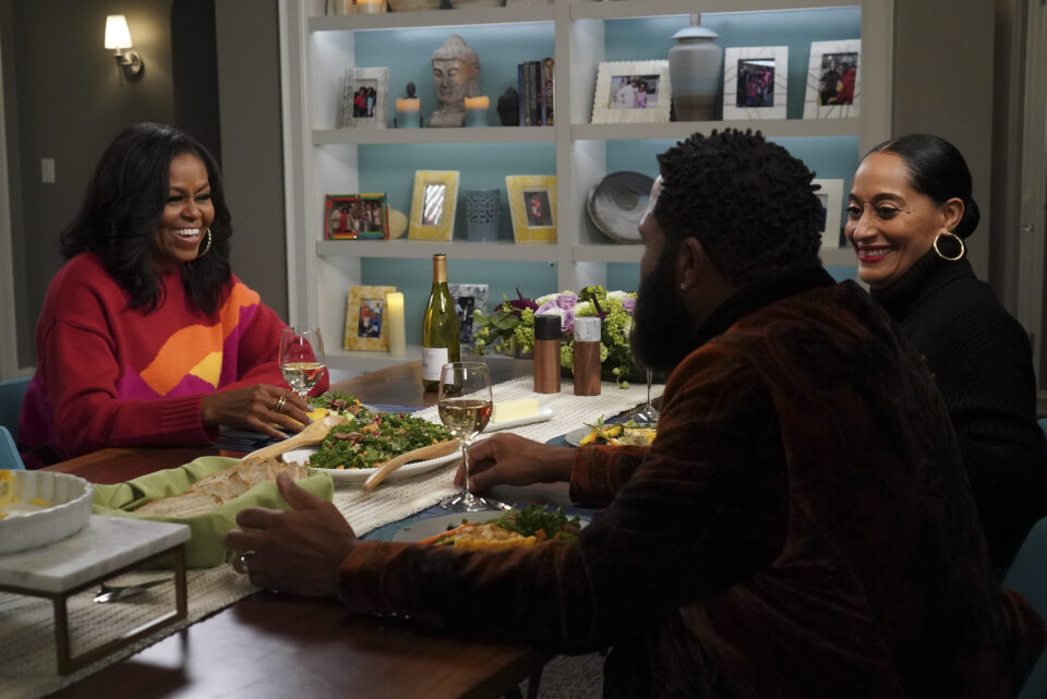 As reported by ABC, “the premiere will take us through an eventful evening with the ex-FLOTUS and the Johnsons. Bow convinces Dre to attend a fundraising event for When We All Vote in hopes to make some new couple friends, as well as do their part in increasing voter participation in upcoming elections. Dre is not convinced, and expects that there will be nothing but husbands there. Lo and behold, their expectations are far exceeded when the special guest for the evening is Michelle Obama,” in a stunning purple suit ensemble.