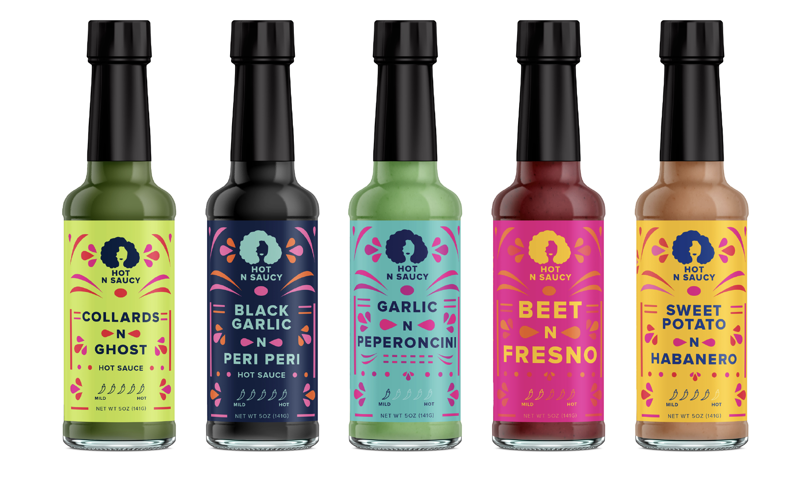 Today, Hot N Saucy offers a different take on classic hot sauces. The vegetable-based, vegan sauces offer bright and bold flavors like Carrot N Chipotle, Beet N Fresno, Garlic N Peperoncini, and Sweet Potato N Habanero.