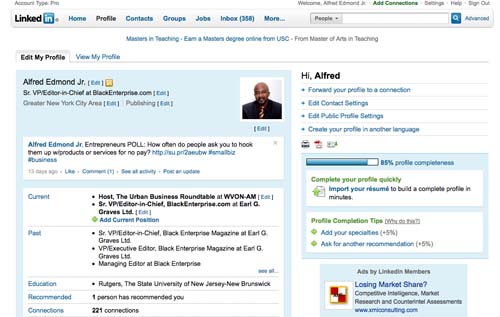 Who are you connecting with on social media sites? Who's connecting with you? More importantly, why are you connected, and how are you using your presence in social media to advance your career, business, financial and lifestyle objectives? These are the questions we had in mind when we created this new BlackEnterprise.com feature, Social Media Connection. Lots of magazines, web sites, bloggers, etc. share all kinds of lists of who's who on Twitter and other social media sites. Our goal with Social Media Connection is to go a little deeper. Each week, we'll profile an entrepreneur, business expert, celebrity or other key influencer in a unique way: breaking down their presence on social media site by site—focusing on their favorites—and getting their insights on how they use that presence to achieve their business goals. Our objective is to give you insights and ideas from the most successful entrepreneurs, professionals and experts engaged in social media, insights you can use to achieve your own goals. To introduce this new feature, which will appear every Thursday, I've volunteered, as the editor-in-chief of BlackEnterprise.com, to be the guinea pig.