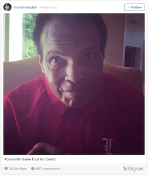 The 72-year-old former heavyweight champion took the photo to support his Louisville Cardinals against Kentucky in college football. “#Louisville Game Day! Go Cards!” Ali’s caption read as his more than 124,000 followers liked the post a whopping 20,000-times and counting. The 9-3 Cardinals would go on to beat the Wildcats in a shoot-out, 44-40.