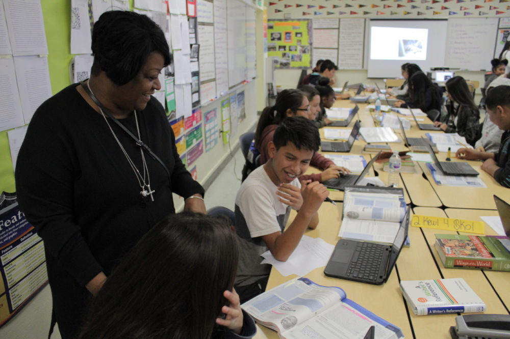 “Some of our students do better in their college courses than in their high school courses!” says Pamela Maddox, the principal. The school’s racial makeup is about 75% Hispanic and 25% black—demographics typical of schools in California, Maddox told me.