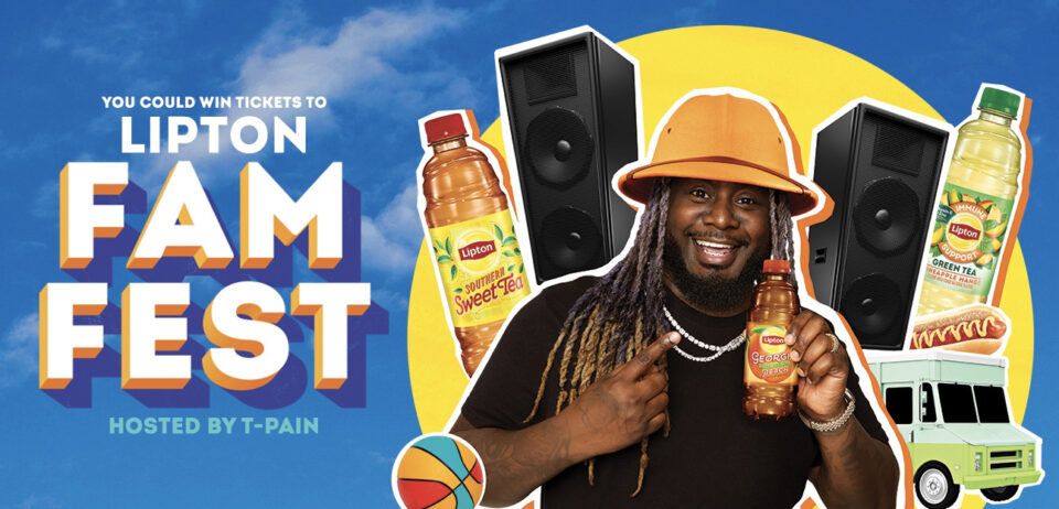 Lipton Iced Tea and T-Pain are joining forces this summer to celebrate the community and give fans a chance to win Lipton’s Fam Fest Block Party hosted by the party starter, T-Pain. One lucky winner will receive the ultimate block party headlined with a performance by the “Bar Tender” hitmaker, food trucks, limited edition merch, and more.