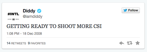 The Bad Boy Records founder was in pure “can’t stop, won’t stop” mode when he launched his first tweet from the set of CBS’s “CSI.”