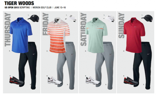 A look at Tiger's outfits for the week of the U.S. Open, courtesy of Nike Golf.