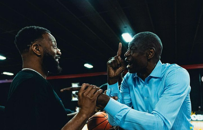 Tracy McGrady (left) shares a moment with former teammate Dikembe Mutombo at OBL's stop in Atlanta earlier this month. (Photo provided by Ones Basketball League)