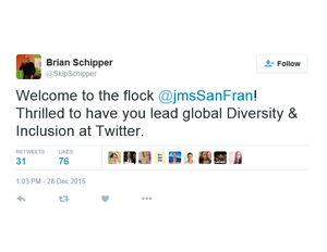 Twitter announced via a tweet that it just hired a new vice president of diversity and inclusion, Jeffrey Siminoff: