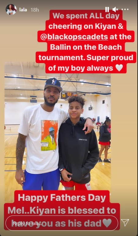 “We spent all day cheering on Kiyan @blackopscadets at the Ballin on the Beach tournament. Super proud of my boy always,” Lala wrote in a caption on a pic of Anthony hugged up with his son.