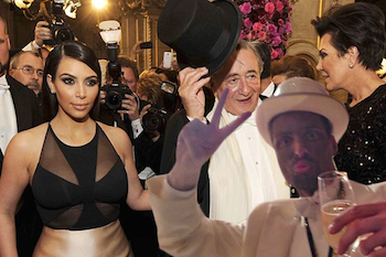 While she was taking pictures with Lugner, a guy who was working the ball came up to her in blackface, and proceeded to act like he was Kanye. In the video, which you can see below, Kardashian tries to escape her racist assailant, but since she was paid to attend, she stayed for another half hour.
