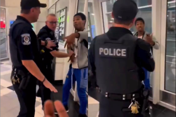 The video shows one officer grabbing the Black student’s hands as the student remains adamant that he did nothing wrong. The young man recording the incident can be heard challenging the officers and asking why they’re going after the Black student.