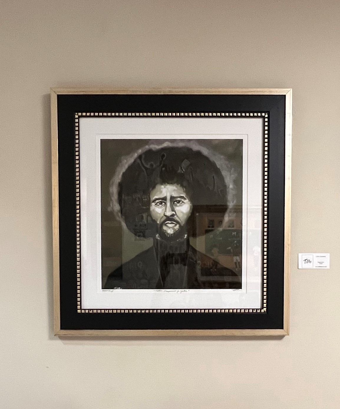 The NIA Cultural Center, located at 22nd and Strand, exhibits over 60 art installations that make up “The Juneteenth Freedom Exhibition.” Visitors can get a sense of the Black experience from present-day back to the 1500s. Memory Keeper Sharon Barron showed BLACK ENTERPRISE how intricacies in the artwork illustrate the complexities of the Black experience. For example, one piece appeared to be a plain image of Colin Kaepernick from far away. Barron said, “You see his afro, but there are items inside of his afro – the boxer, Rosa Parks, the police, the riots – but you have to look closer.”
