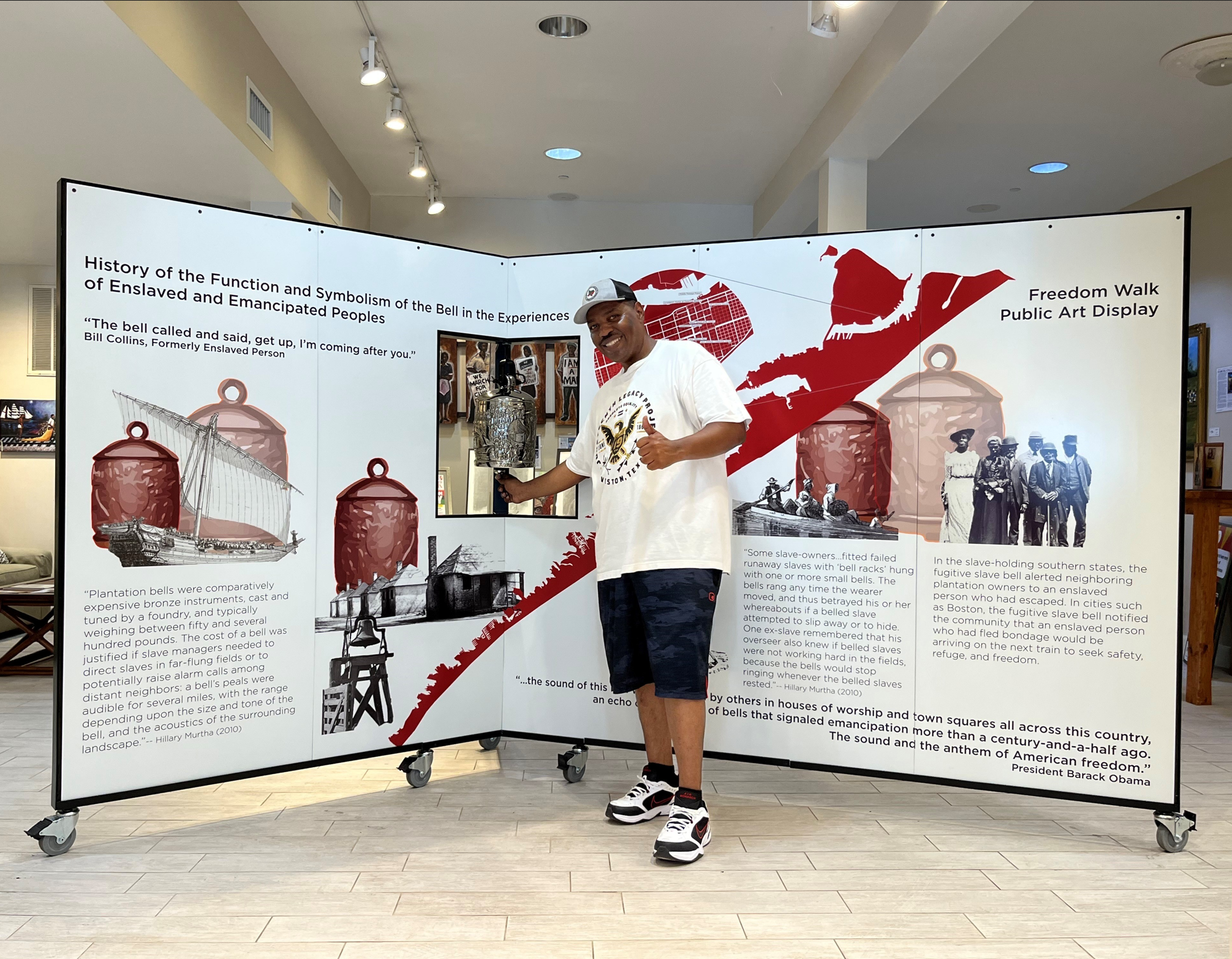 Texas Agricultural and Mechanical University and Prairie View Agricultural and Mechanical University collaborated on a display about the symbolism of the bell. The piece is titled “History of the Function and Symbolism of the Bell in the Experiences of Enslaved and Emancipated Peoples.” It is one of many more to come from the collaboration. The exhibition features the work of Ted Ellis, the only African American artist appointed to the federal 400 Years of African American History Commission by the U.S. Department of the Interior. Learn more about the exhibition at juneteenthlegacyproject.com.