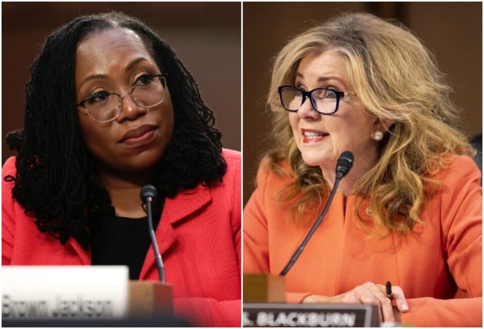 Sen. Marsha Blackburn, a Tennessee Republican, uses her white privilege to scold Ketanji Brown Jackson during her Supreme Court confirmation hearing, with a series of culture war references.
