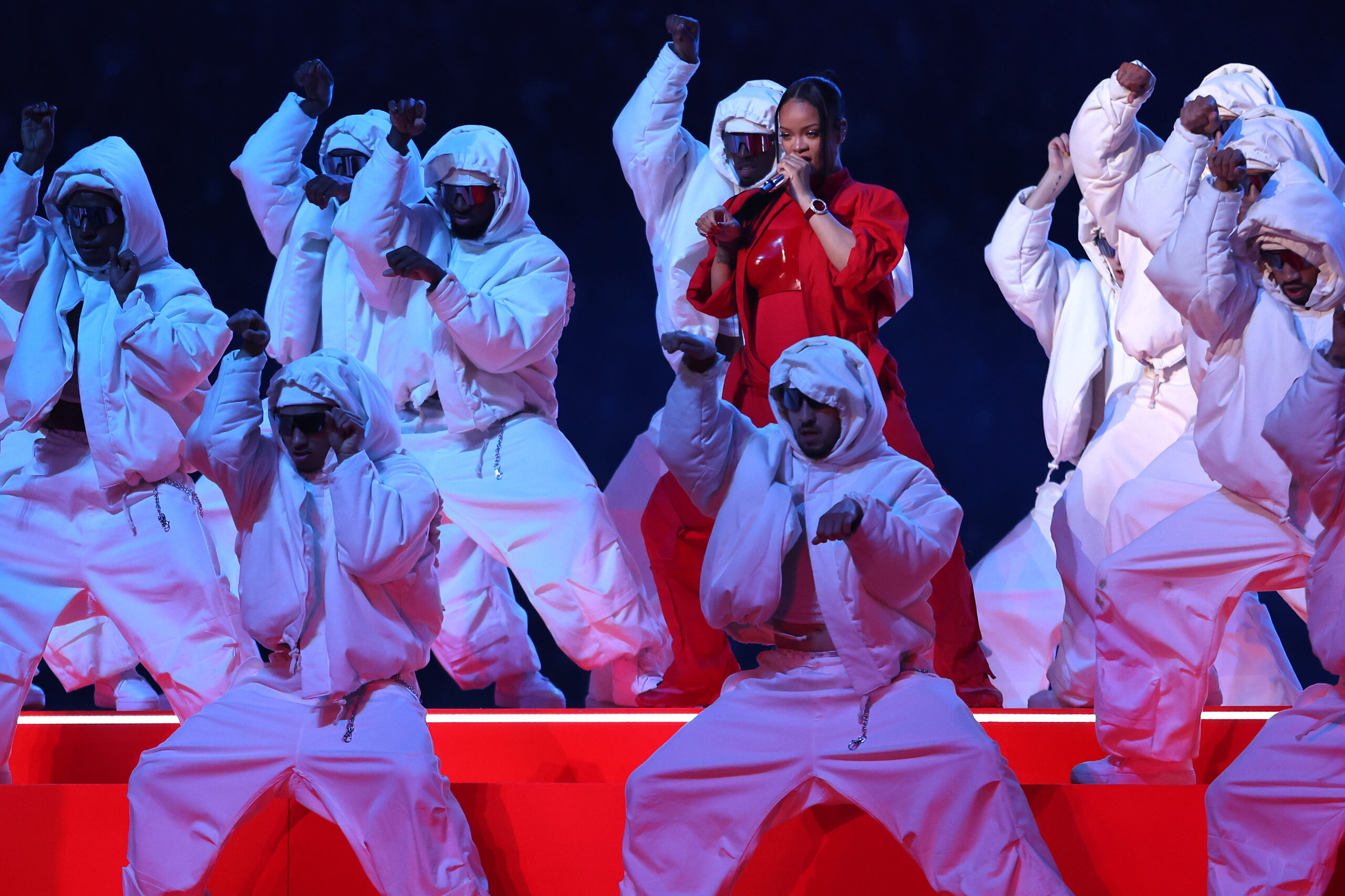 Rihanna was singing and dancing but it was a bit muted. She didn’t go all-out bad gal at State Farm Arena in Glendale, Arizona. Now we know why.
